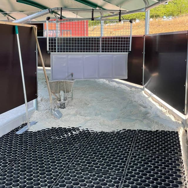 Il corridoio EASY in compensato marino è realizzato con un multistrato (15 mm. di spessore) antigraffio, antiurto, resistente allo sporco e idrorepellente. L'obbiettivo di questa soluzione è quello di fornire un elevato grado di sicurezza forzando il cavallo a concentrarsi sul percorso durante l'allenamento.