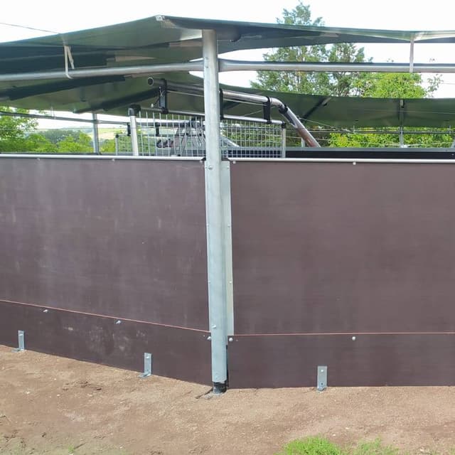 La copertura in PVC è composta da una struttura in acciaio zincato la quale sorregge un telo in tessuto di poliestere spalmato di colore verde o crema e in base alle esigenze del cliente anche in altre colorazioni.