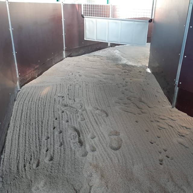 The marine plywood corridor EASY is made of a plywood (15 mm. thick) scratch-resistant, shockproof, dirt-resistant and water-repellent. The goal of this solution is to provide a safe environment where the horse can focus on the path during training.