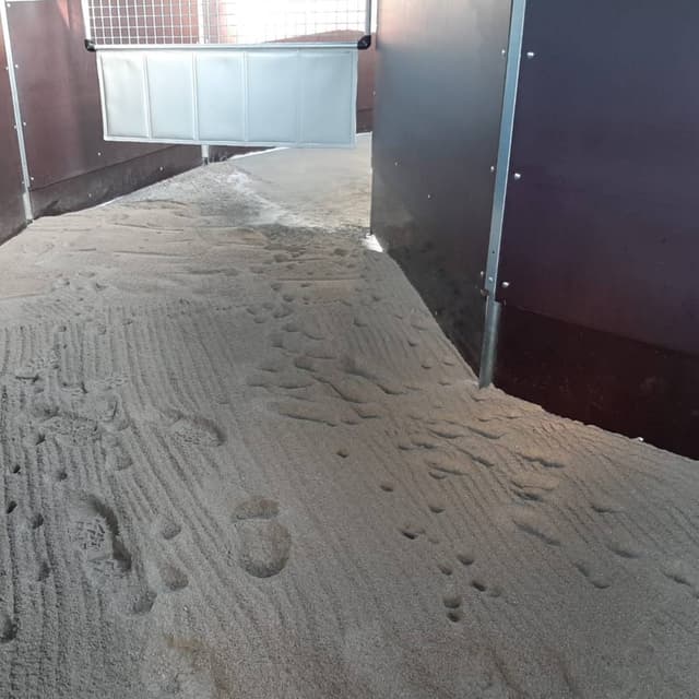 Il corridoio EXERCISER in compensato marino è realizzato con un multistrato (18 mm. di spessore) antigraffio, antiurto, resistente allo sporco e idrorepellente. L'obbiettivo di questa soluzione è quello di fornire un elevato grado di sicurezza forzando il cavallo a concentrarsi sul percorso durante l'allenamento.
